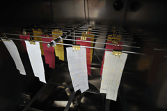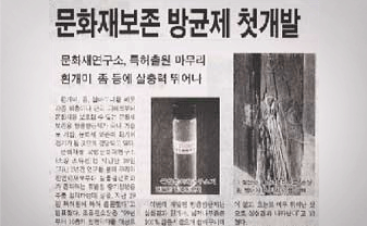 Based on research on the chemical and physiological properties of natural ingredients extracted from herbs traditionally used to preserve artifacts, we attempted to shed scientific light on the wisdom of traditional knowledge and to promote the development of insect repellent / antifungal products which do not have any harmful effects on cultural properties. As a result of this effort, in 2000 we were successful in extracting insect repellent/antifungal ingredients that would not have any harmful effects on the conservation of cultural properties from a traditional herbal medicine, and we became the first researchers to develop an insect repellent/antifungal product specifically for cultural properties. The result of this research was a patent application in 2001 and, as of now, we have completed the various stages of product development for the effective conservation and management of paper and fabric cultural properties. We completed the merchandizing of our products in 2003 and finalized the patent in 2004 (No. 0421538), leading research on the conser-vation of protection of cultural properties from biological damage.