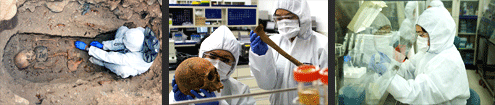 For the analysis of ancient DNA, special precautions must be taken to eliminate contamination by those handling the samples and the external environment, so creating a lab that can prevent such contamination is important. The DNA extraction lab for excavated human remains should be set apart from the regular DNA analysis lab, and must be set apart from labs that carry out DNA amplifi-cation or cloning.