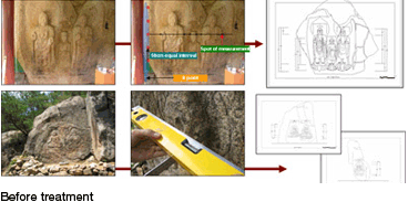 whose surface is uneven. Therefore, the research laboratory plans to conduct research on the development of investigative and measurement techniques with a surface aeration degree appropriate for domestic stone cultural properties. Research on the verification of non-destructive evaluation methods and testing at the research site are imperative, and according to the research results, we aim to perfect our investigative and evaluative non-destructive techniques appropriate for domestic and international stone cultural properties.