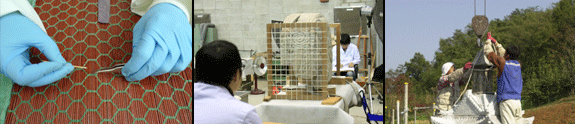 - Targeting tangible cultural heritages consisting of such diverse materials as metals and paper, the center conducts a comprehensive range of conservation-related works including scientific investigation and research, status inspection, conservation treatment, and restoration.