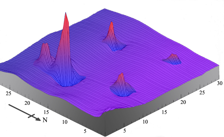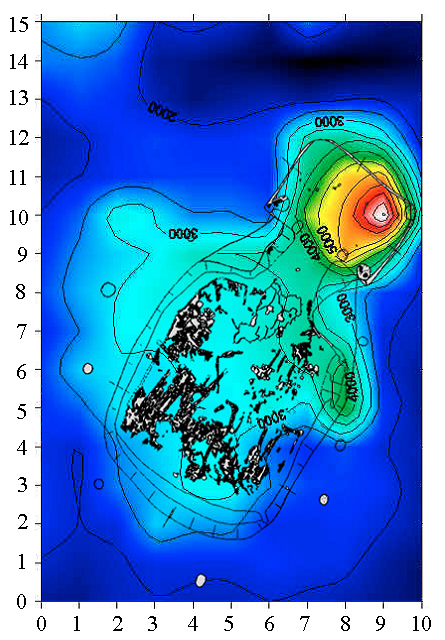 - 프로톤 자력계를 이용하여 총자력의 세기를 측정한 결과, 탐사지 안에서 여러 개의 쌍극자가 확인되었다.