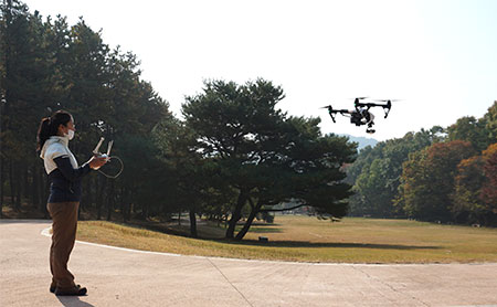 디지털문화유산연구정보팀에서는 무인멀티콥터를 이용한 항공촬영을 실시하여 문화유산의 디지털기록화 및 정보 추출을 하고 있다.